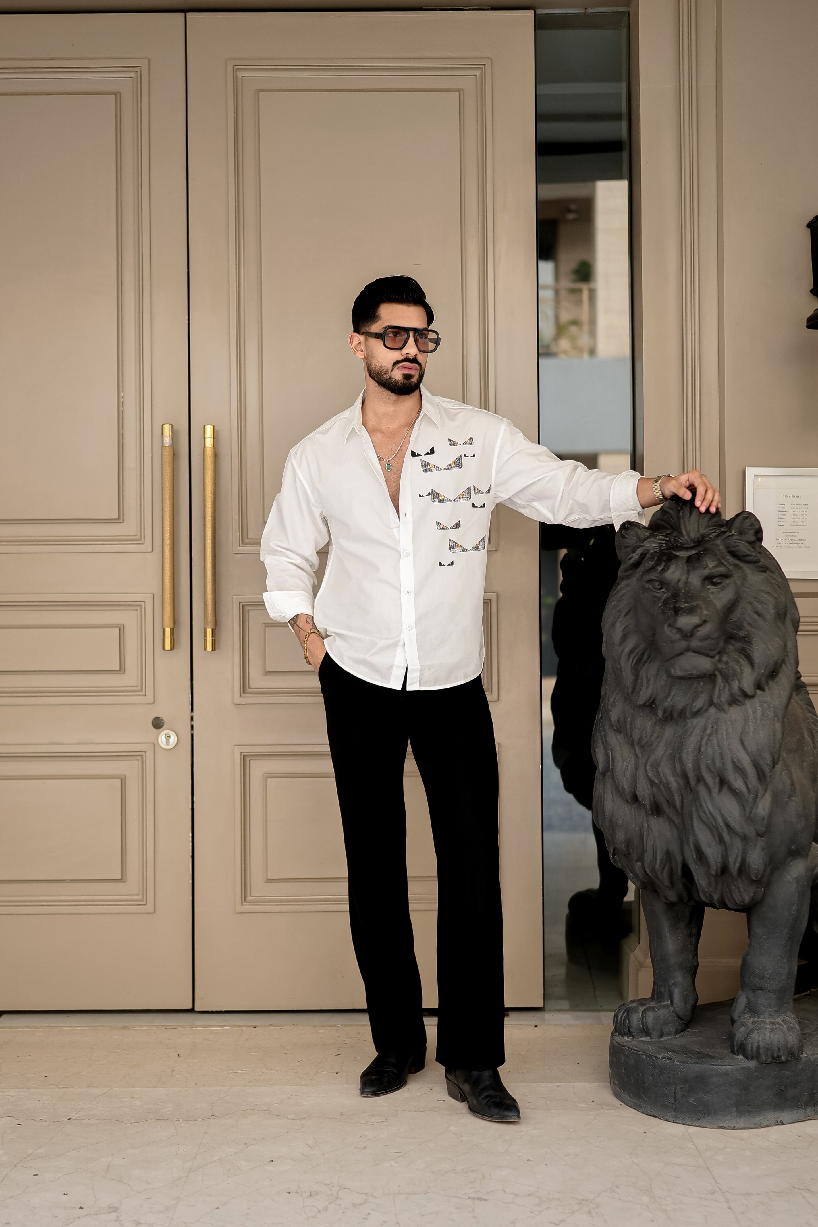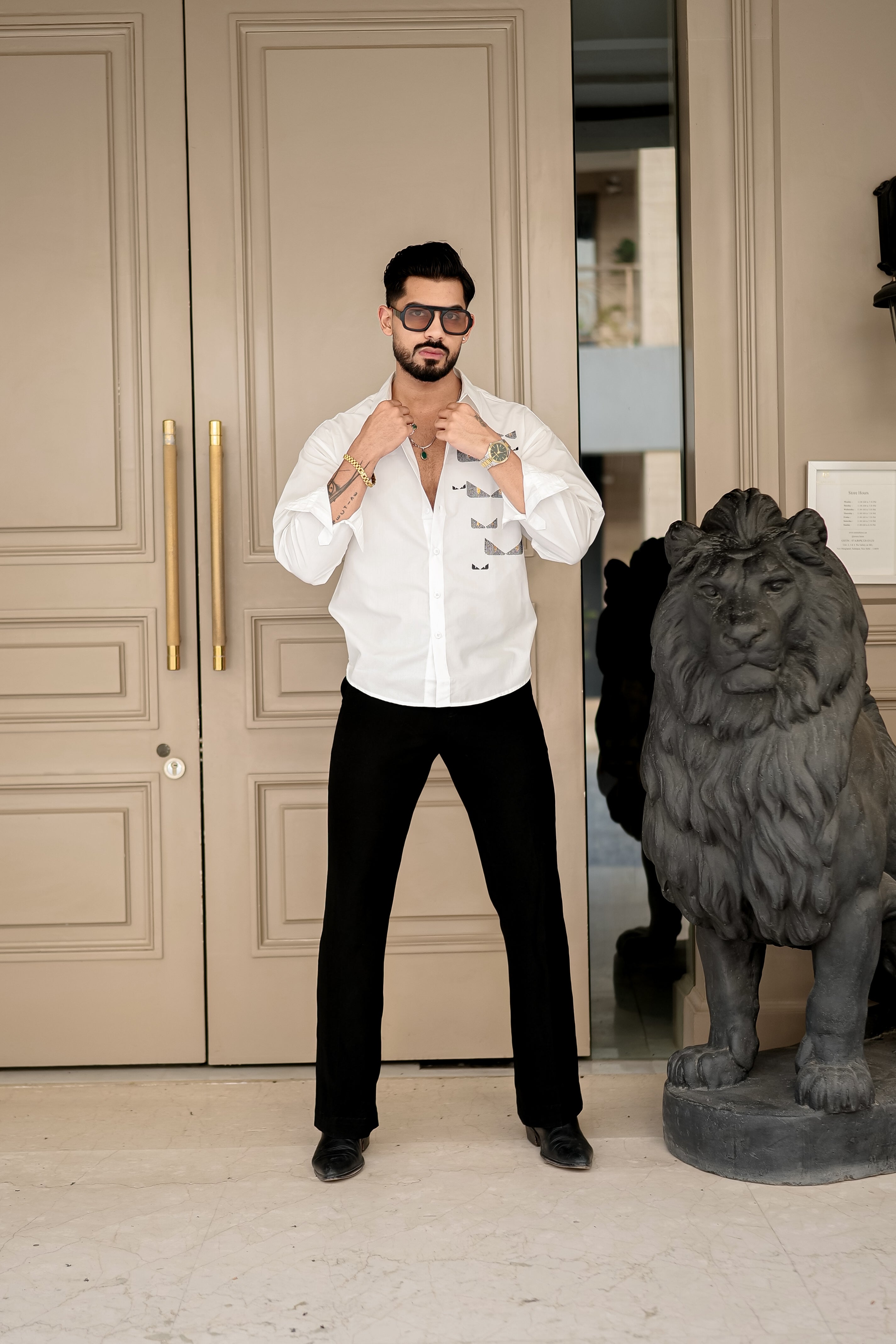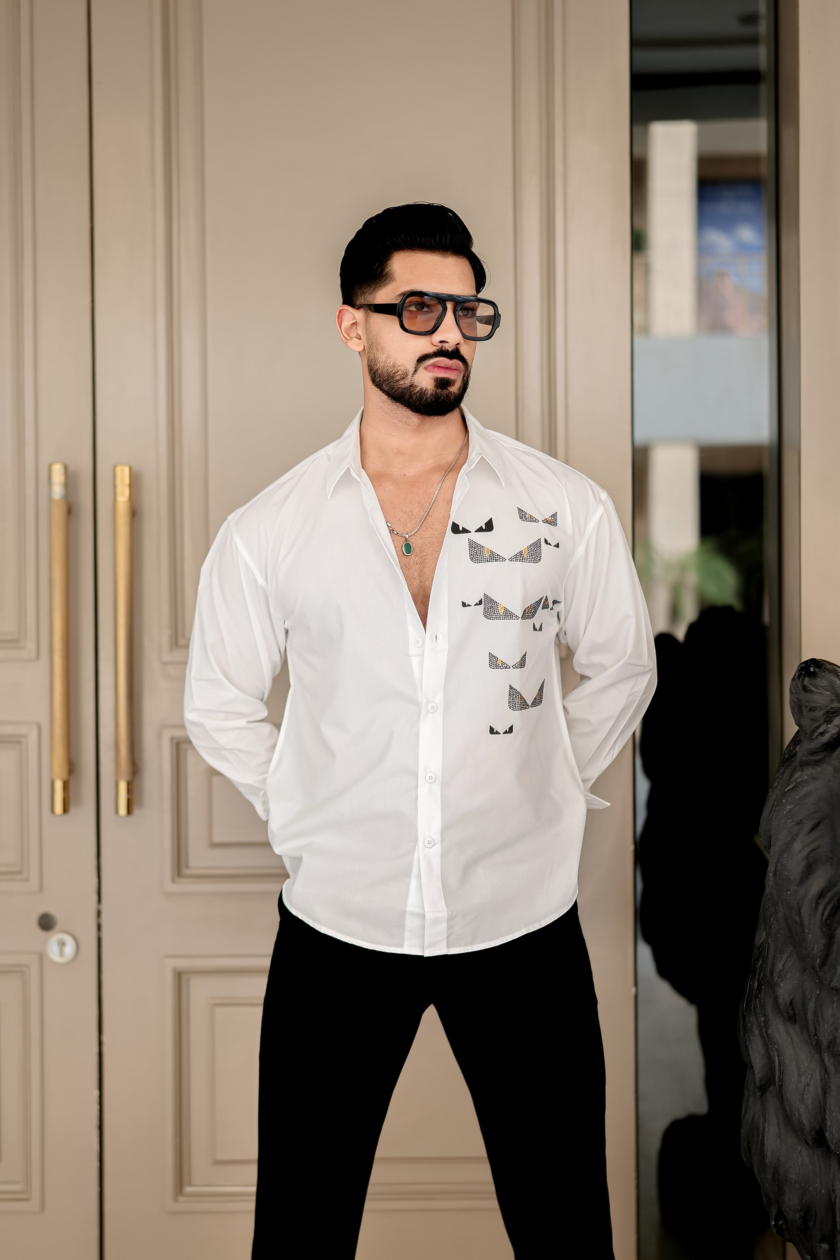 Fashion Casino Embroidery White Premium Cotton Shirt