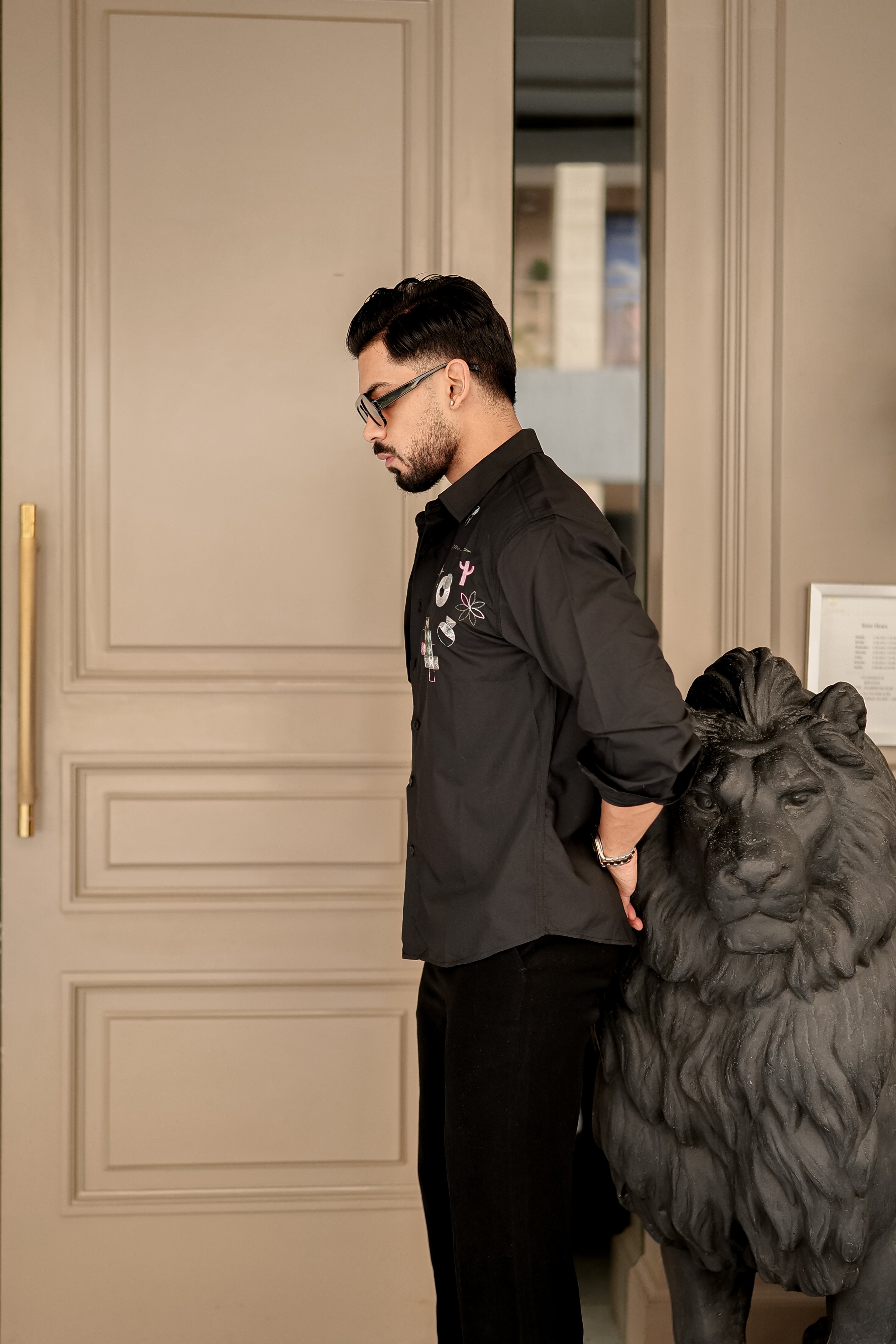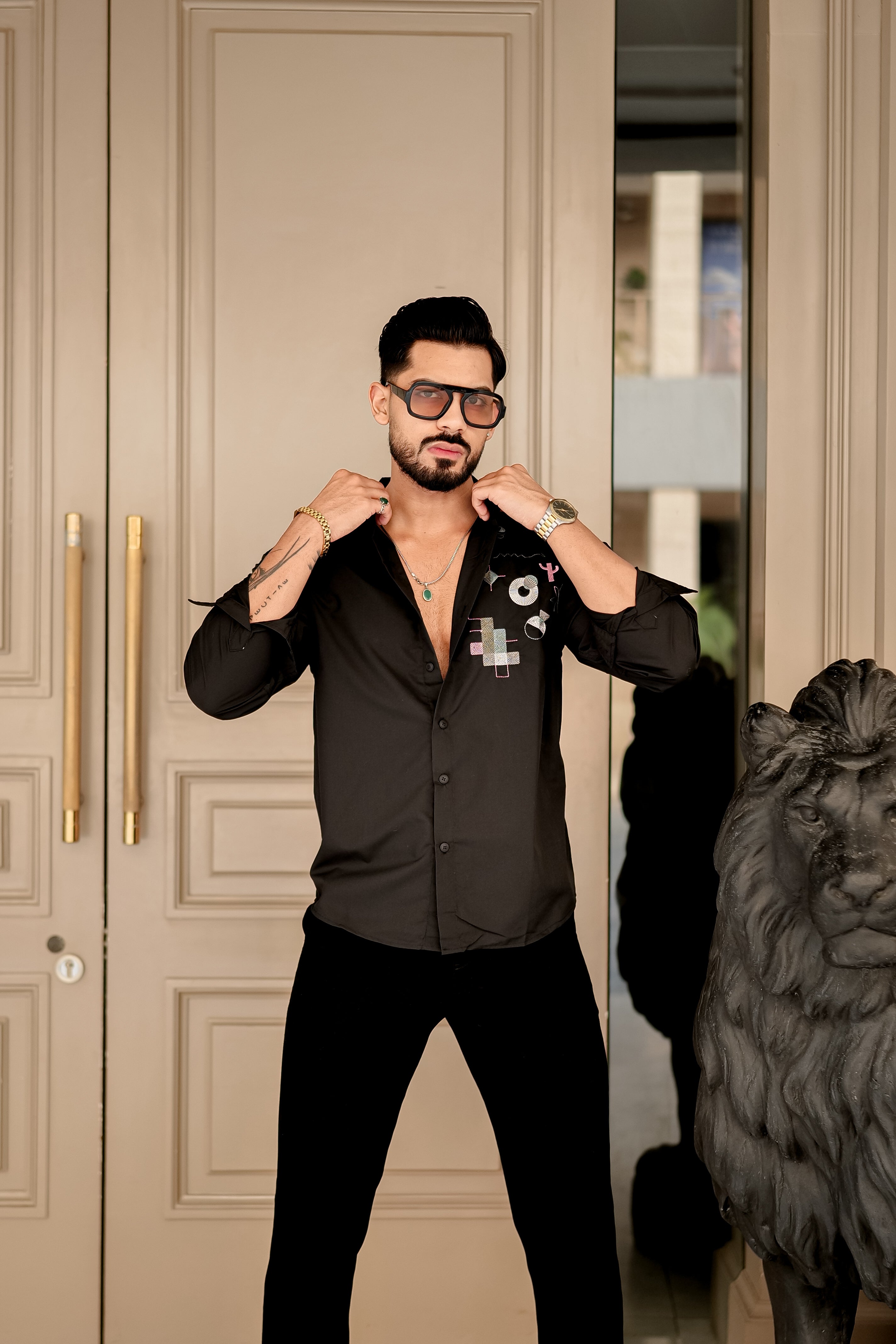 • Fashion Casino Embroidery Black Premium Cotton Shirt